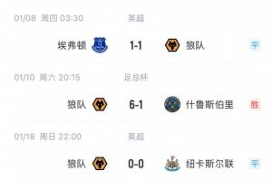 近4輪英超,狼隊(duì)先后戰(zhàn)平曼聯(lián)、埃弗頓和紐卡三支勁敵,并3-0大勝保級對手西漢姆聯(lián)。