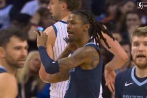 此前莫蘭特因?yàn)閮纱问褂貌磺‘?dāng)慶祝動作,被NBA罰款7.5萬美元巨款