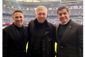 巴西國家隊(duì)官方更新社媒動態(tài),曬出安切洛蒂與巴西足協(xié)副主席迪亞斯、國家隊(duì)總監(jiān)卡埃塔諾在伯納烏的合照。